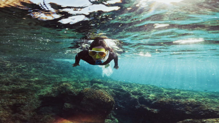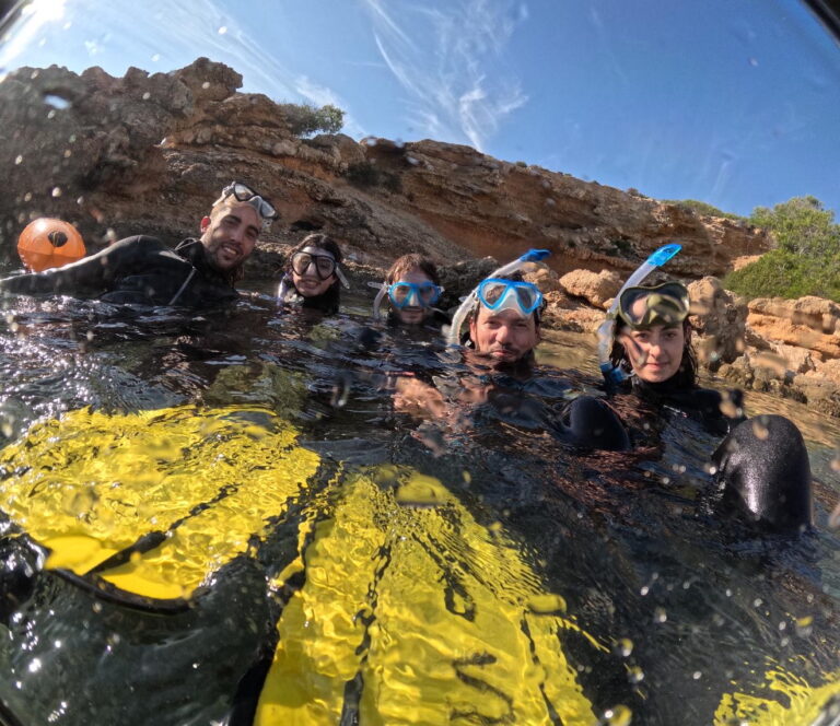Dependiendo de la dirección del viento, irás hacia el sur, a la zona de Montroig, donde a veces el agua es de un azul intenso. Admira la impresionante belleza de la zona mientras nadas o practicas esnórquel en el agua.